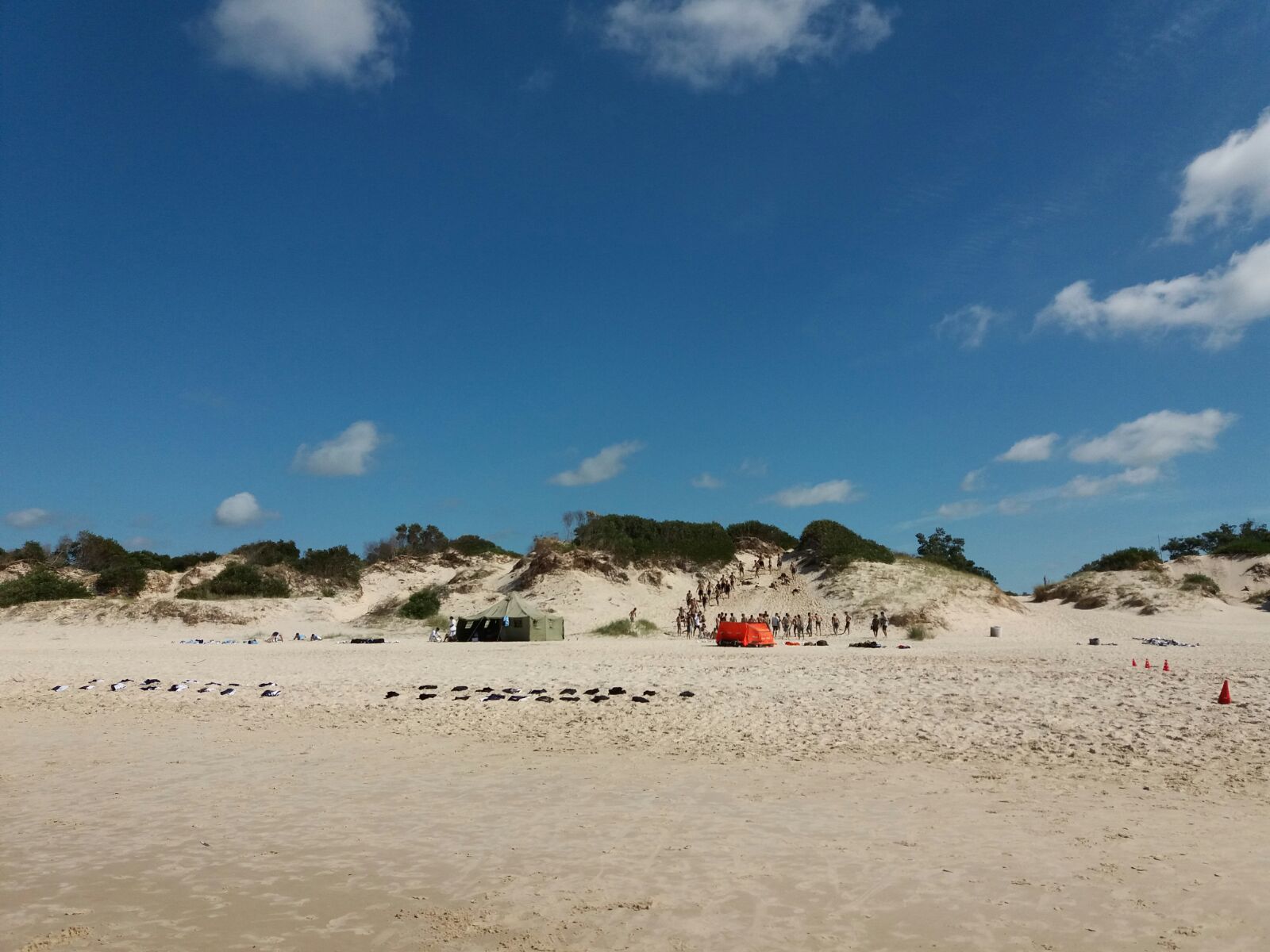Luego el vuelo rasante de un aviocar y la llegada de un helicóptero hacía temer lo peor. Si se miraba al oeste se podía apreciar que unos 100 marines , hombre y mujeres que se aprestaban a lanzarse al mar como efectivamente lo hicieron rato después y de ese modo cerraba para el transúnte que se trataba de una maniobra de simulacro.