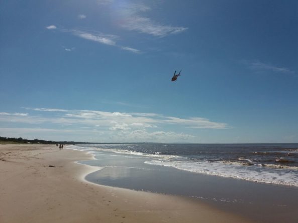 La Escuela Militar Aeronáutica sorprendió hoy a los muchos veraneantes que todavía quedan en las costas de Canelones y a los residentes al realizar maniobras en la playa de Pinamar frente al Centro Militar. Aviones de la Fuerza Aérea y un helicóptero mas lanchas zodíacas y unos 150 estudiantes se hicieron a la mar para participar de una intensa jornada de maniobras.