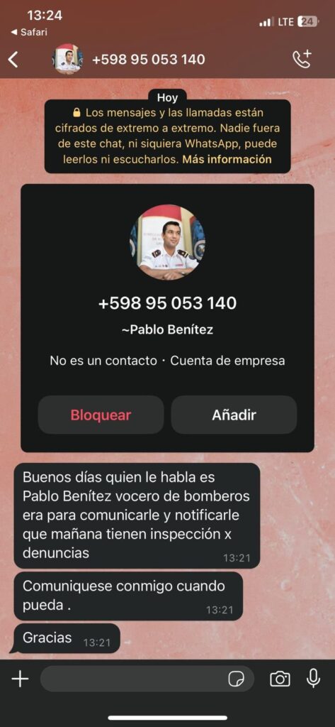 Consultado por Soldeleste el propio Pablo Benítez que hoy se está reintegrando de la licencia, confirmó “que se trata de una estafa”, “voy a hacer la denuncia policial, estan usado eso ahora que es un tema sensible” advirtió Benítez, quien durante muchos años estuvo a cargo de la comunicación de Bomberos y hoy lo hace a nivel ministerial.