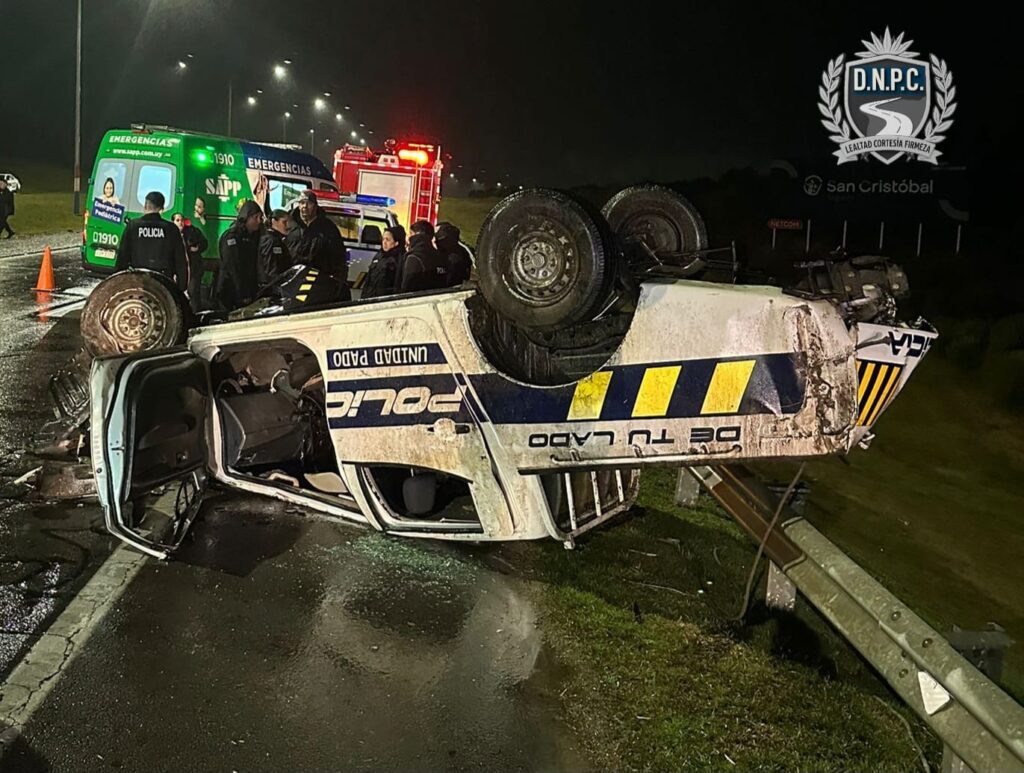 En Villa Argentina, Canelones kilómetro, 43 de la ruta Interbalnearia , dos policías, resultaron, heridos al volcar la camioneta oficial en la que se desplazaban por razones que se desconoce, resultando politraumatizado y permaneciendo internados en centros asistenciales.